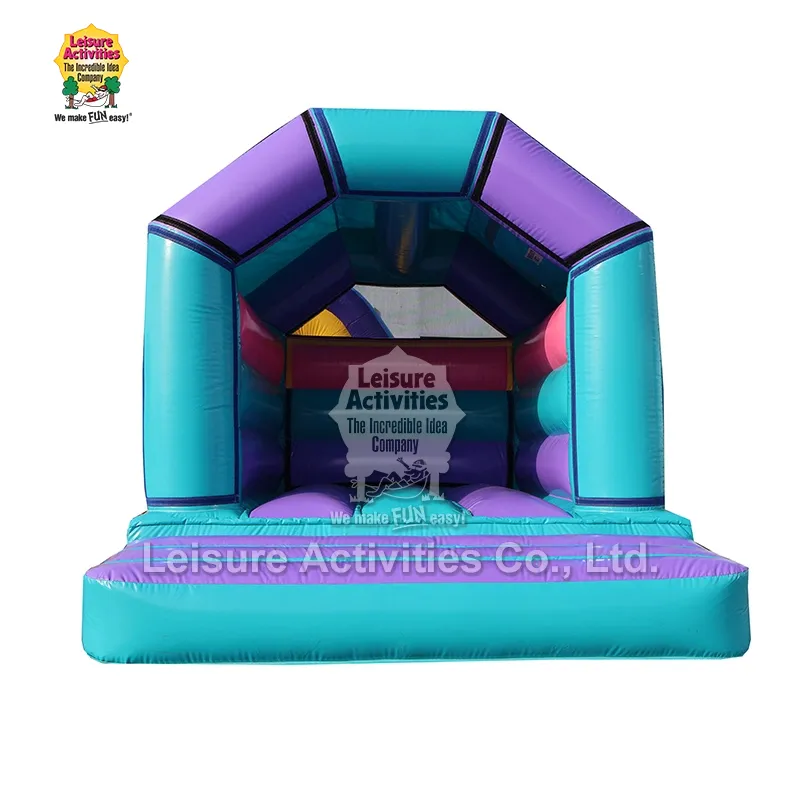 Leisure Activities® öz fabriki ilə Çində şişmə qalaların peşəkar istehsalçısı və təchizatçısıdır. Bizim Mini Şişmə Bouncy Castle A Frame Purple Teal with Roof müxtəlif festivallara və mövsümlərə uyğun olaraq müxtəlif mövzularla fərdiləşdirilə bilər. O, yüksək keyfiyyətli materiallardan hazırlanmışdır və iki saplı texnika ilə tikilmişdir, möhkəm və davamlıdır və EN14960 təhlükəsizlik standartlarına uyğundur.
